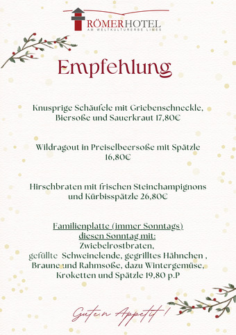31.12.2025 17:00 - 22:00 Uhr (Menübeginn: 18:00 - ca. 21:30)