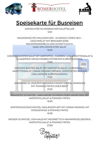 - Essen Sie À la Carte mit unserer Speisekarte für Busgruppen