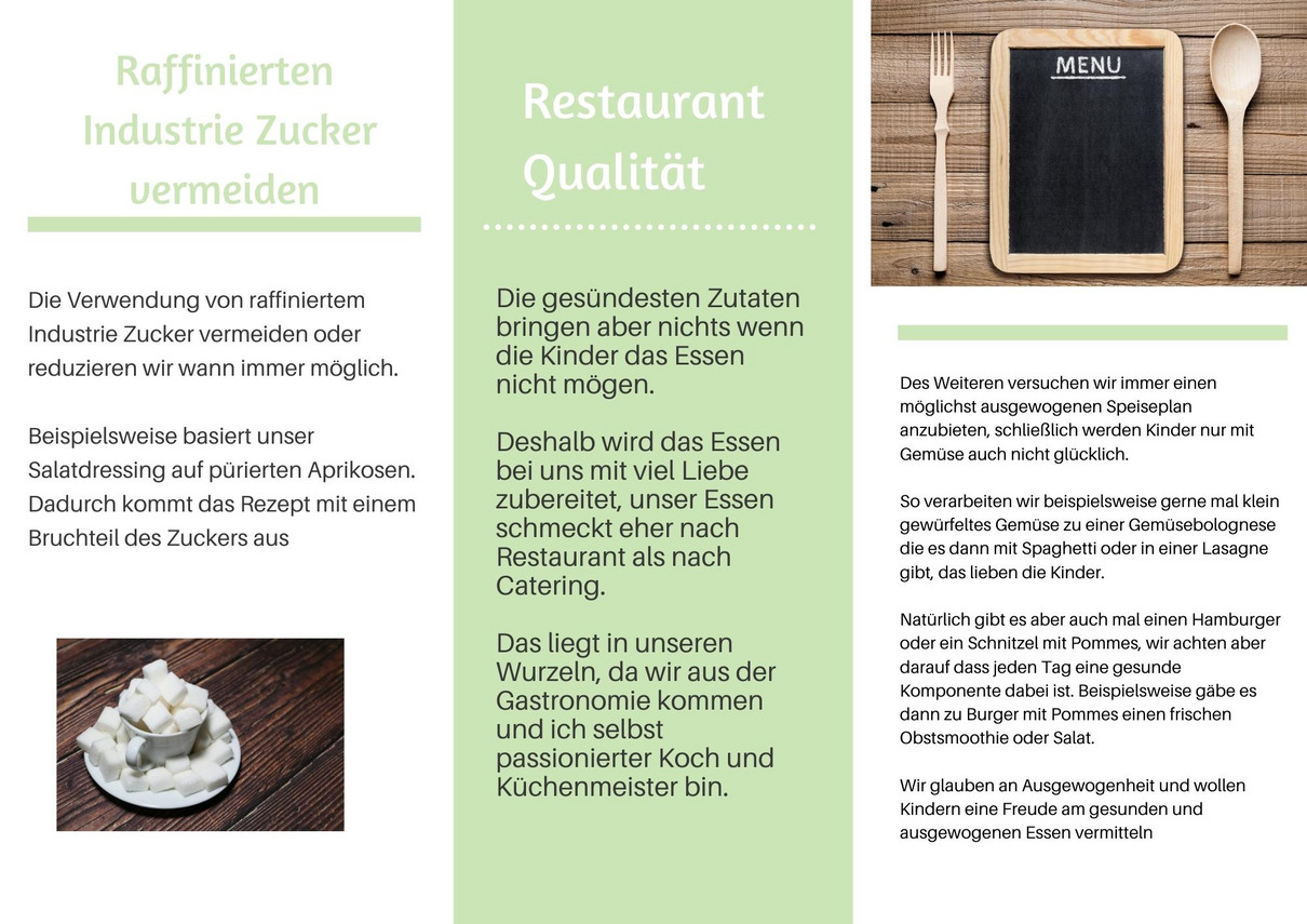 Probieren Sie ganz einfach unser Essen! Schlussendlich geht es um Qualität und Geschmack, deswegen bieten wir jeder Einrichtung, die sich für unser Konzept interessiert ein unverbindliches und kostenfreies Probeessen an – gerne auch für das ganze Team und die Kinder, denn um die geht es schhließlich. Sie bekommen von uns eine Lieferung aus dem laufenden Speiseplan, so als wenn Sie unser Kunde wären, um das Essen unter realistischen Bedingungen zu probieren. Sprechen Sie uns gerne darauf an und wir vereinbaren einen Termin.