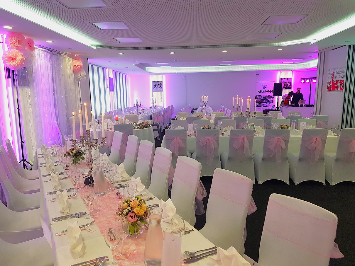 Ob klassisch in Weiß, elegant mit Farbakzenten oder modern inszeniert: Wir gestalten Ihre Hochzeitslocation ganz nach Ihren Wünschen. Liebevoll eingedeckte Tafeln, stimmungsvolle Beleuchtung und charmante Details sorgen für eine Atmosphäre, die Ihren Tag unvergesslich macht.